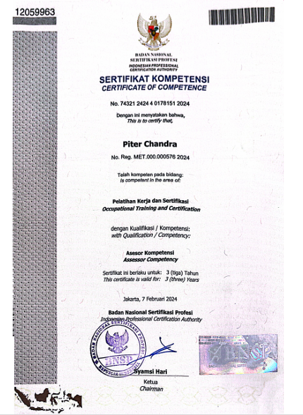 Certified initerdaftar di HAKI, kementerian kehakiman. Jadi dijamin tidak ada penyelenggara certified lain, kecuali kami (LPK-CHC). Peserta yang telah certified terdaftar di Dapodik.