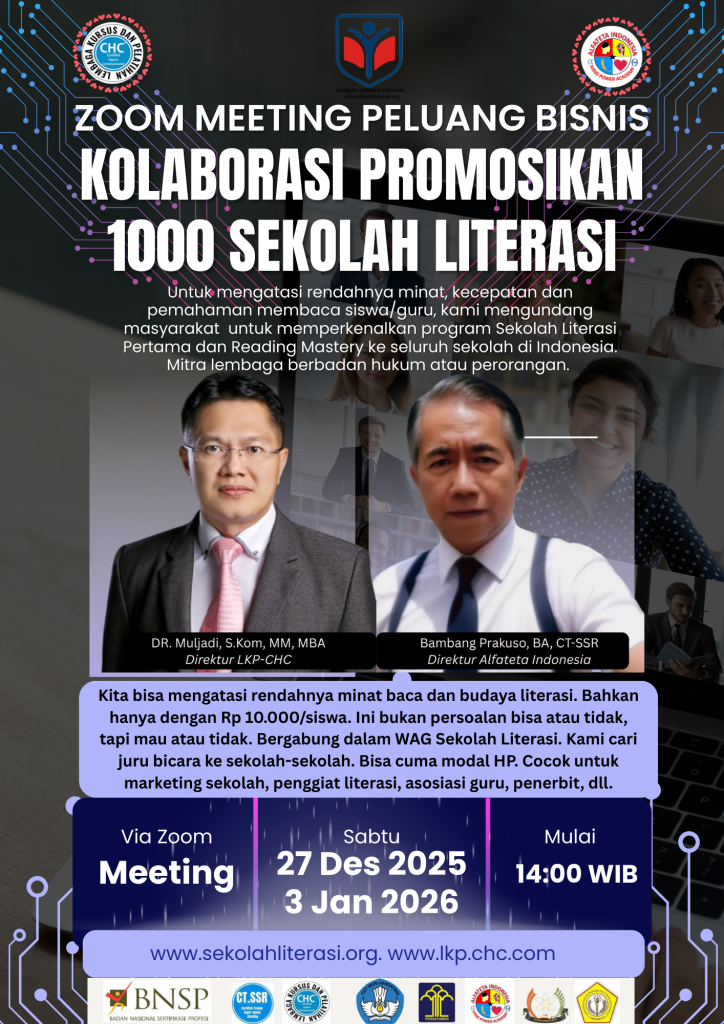 LKP CHC adalah pilihan tepat karena menggabungkan pengalaman lebih dari 15 tahun, kurikulum aplikatif, serta sertifikasi resmi yang diakui Dinas Pendidikan dan terdaftar di Dapodik Kemendikbudristek. Dipimpin oleh pakar berpengalaman, pelatihan di LKP CHC tidak hanya meningkatkan keterampilan, tapi juga membentuk kepercayaan diri, pengaruh positif, dan kesiapan profesional di dunia nyata.